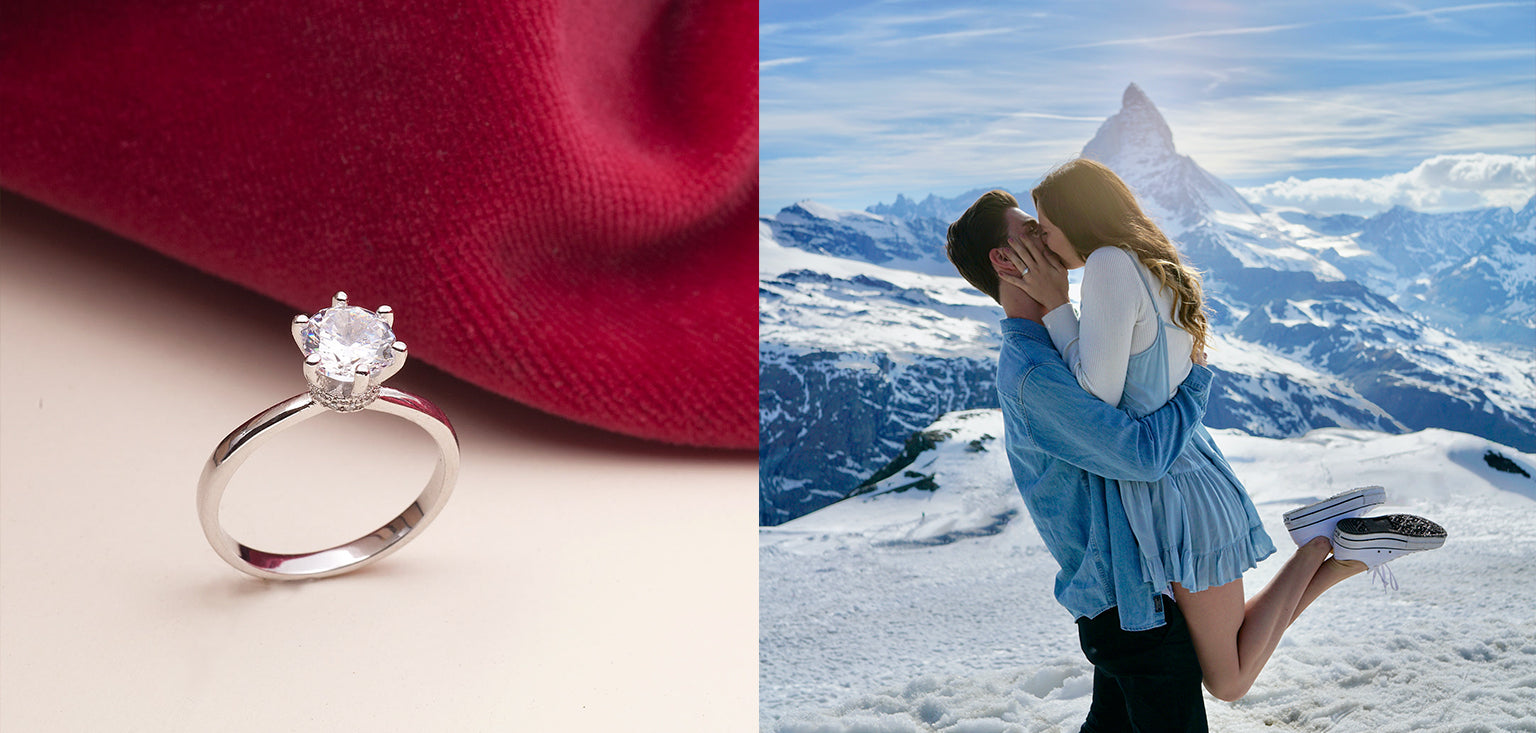 Make a statement of love with our 3 Diamond Engagement Ring. Three sparkling diamonds symbolize the past, present, and future of your relationship. The unique design showcases these precious gems, adding extra sparkle to your special moment. Celebrate your love with this stunning ring.