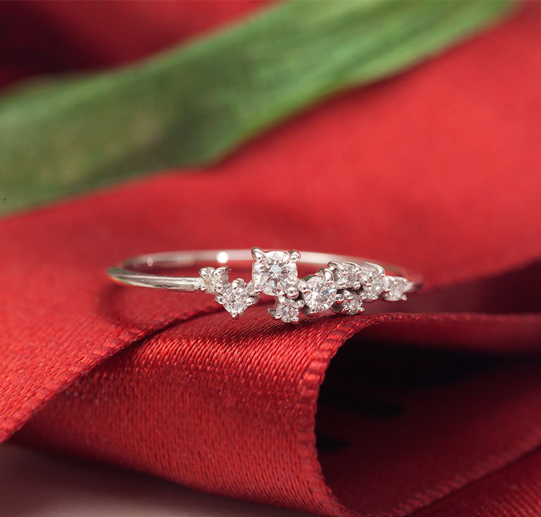 The style of promise bands can be absolutely anything. It can be a dainty and simple eternity band with stones 1 mm in size or a complex piece of jewelry with stones weighing 1 carat or more. Elegant cluster moissanite ring, pear or round cut moissanite engagement ring, crown curved or art deco wedding band, three stone or five diamond analog, new elegant flower or oval moissanite rings for her? The key to this is the price. Whatever you choose, it will be affordable and within your budget.